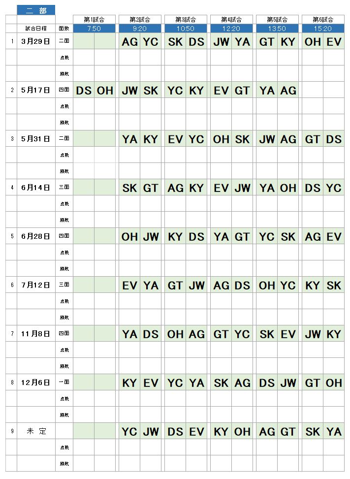 二部・試合日程